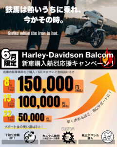 6月限定・HarleyDavidson Balcomのキャンペーン!